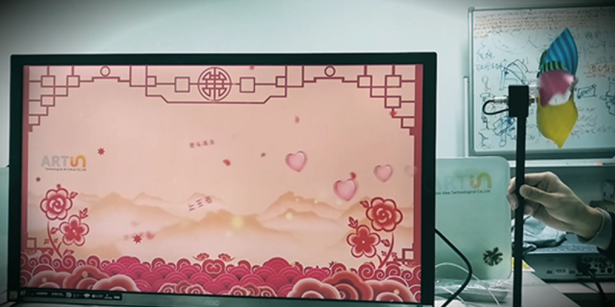 吹动风车,屏幕中会吹出心形泡泡生成文字,风车转的越快,飞出的泡泡越多。